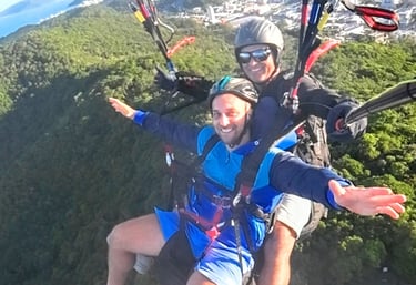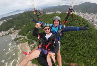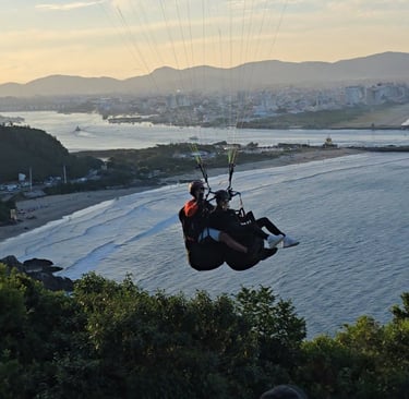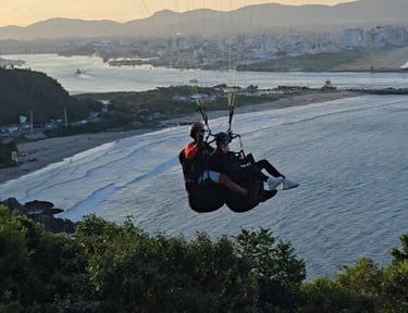 Voo duplo de parapente em Balneário Camboriú, Florianópolis e região com segurança e emoção. Rampas onde atendemos: