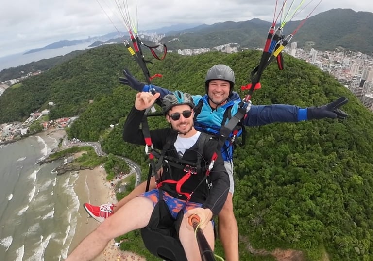 Na caricafly, proporcionamos voos duplos de parapente cheios de adrenalina e vista inesquecível em Balneário Camboriú, Florianópolis e região.